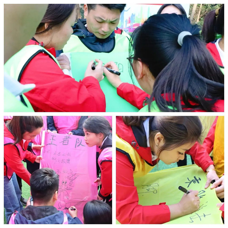 本次拓展训练共分3支队伍。活动伊始,通过破冰融合,各支队伍按照教官要求,选队长、议队名、提口号、绘队旗,展示各队文化。