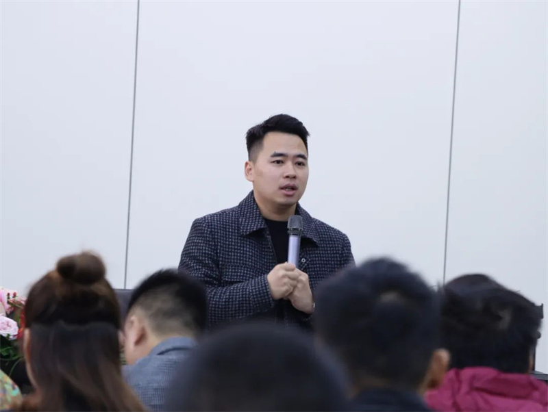 王刚在大会上为在座的员工分享了求学、就业和创业的经历,并向大家分享了此次外出学习后的心得体会,通过举例的方式让大家明白了:“没有一个创业者的道路是平坦且容易的,这需要拥有永不言败的精神、过于常人的毅力和一路走来亲人朋友的支持和帮助。我们都是社会的个体,我们又都是社会群体的一部分。感恩、真诚才是每个人成功的秘诀。人生就是一场修行,每一个转折点都是精彩的,也是你通往成功的必经路。”